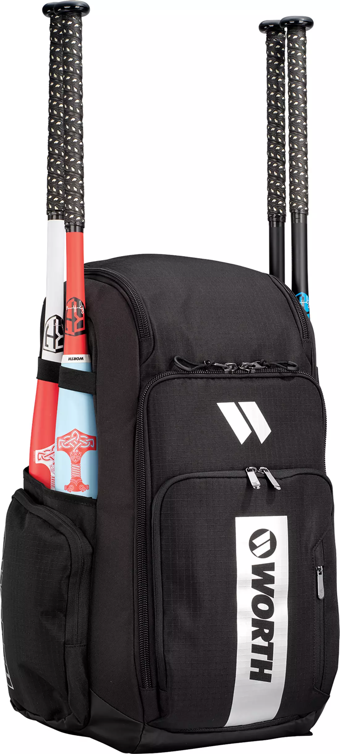 Engineered specifically for slowpitch players who need a quality bag for their gear. First off, it has 4 individual bat sleeves on the sides so you can easily carry all you bats to the field. It's also equipped with a large main compartment for helmets and other gear, and also features a top glove compartment to keep your glove safe and in game form. It has large, durable zippers too.