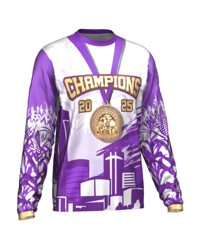 Championship long-sleeve shirt. 100% polyester. Customized with your name and number on the back!